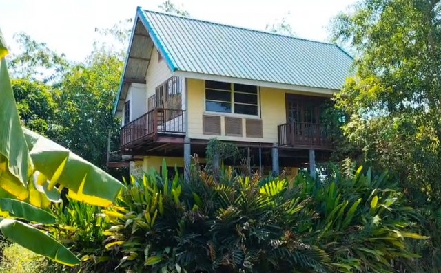 - เนื้อที่ 1 ไร่ บ้านชั้นเดียวยกสูง