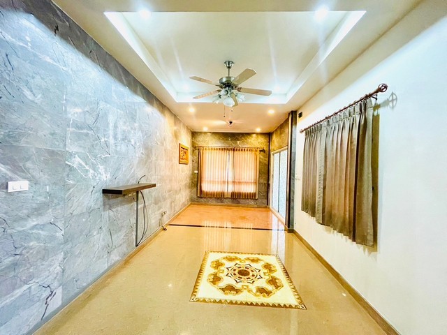 ภายในตัวบ้านปูพื้นด้วยกระเบื้องแกรนิตโต้ทั้งหลัง ตกแต่งผนังด้วยกระเบื้องลายหินอ่อนสวยงาม ประตูห้องนอนทั้ง 2 ห้อง เป็นประตูแกะสลักด้วยเนื้อไม้อย่างดี แบ่งโซนใช้สอยได้อย่างลงตัว บริเวณด้านหน้าสามารถตกแต่งเป็นโซนรับแขก บริเวณด้านหลังสามารถตกแต่งเป็นโซนรับประทานอาหารได้ บริเวณด้านหลังต่อเติมห้องเพิ่มกว้างขวางมากๆ ถัดจากห้องต่อเติมเป็นบริเวณซักล้างและทำห้องเล็กให้เพื่อเก็บของต่างๆ และบริเวณหน้าบ้านต่อเติมโรงจอดรถพร้อมปูกระเบื้อง พื้นที่ใช้สอยหน้าบ้านกว้างมากๆ บ้านสวย สะอาด พร้อมเข้าอยู่ ต่อเติมเต็มพื้นที่เพื่อประโยชน์ใช้สอยตามต้องการ มีพนักงานรักษาความปลอดภัยตลอด 24 ชม. ภายในหมู่บ้านมีสนามเด็กเล่น สระว่ายน้ำ ฟิตเนส กิจกรรมเต้นแอโรบิคกลางแจ้ง ร้านอาหารหลายร้าน มีตลาดนัดบริเวณหน้าหมู่บ้านทุกวันหาของรับประทานได้ง่ายและสะดวก หน้าหมู่บ้านมีวินมอเตอร์ไซด์ให้บริการ การเดินทางสะดวก เข้าออกได้หลายทาง ถนนกาญจนาภิเษก ถนนบางนา-บางปะอิน ถนนพหลโยธิน