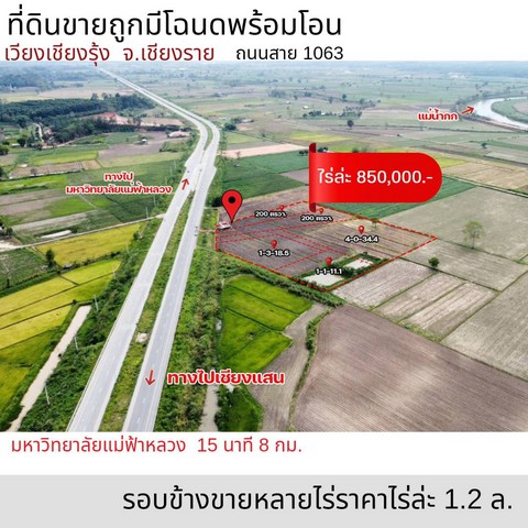 ติดถนนเลข1063 กว้าง 4 เลน 16 เมตร ทางไปท่าเรือเชียงแสน