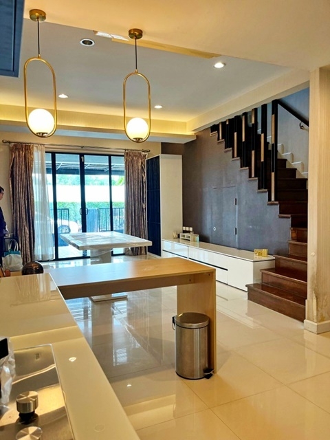Cheaper than Condo 210sq.m. BTS On Nut townhome for rent 3.5 floors newly renovated 21sq.wa. 64,999B-M fully furnished as in the picture very good location accepting foreigners 3bed 4bathr 4A/C 2parking EmQuartier.
