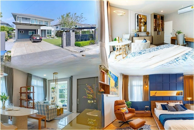 Bangna Km. 7 MRT Sri Lasalle luxury mansion 4bed for rent 2 floors very large Manthana 110sq.wa. 230sq.m. 109,999B-M fully furnished 5bath 5A/C 4parking has a garden IKEA Bangna.
