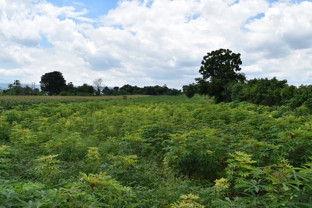 ปัจจุบันปลูกมันสำปะลัง เป็นที่ดินสีเขียว มีเสาไฟฟ้าแรงสูงผ่าน