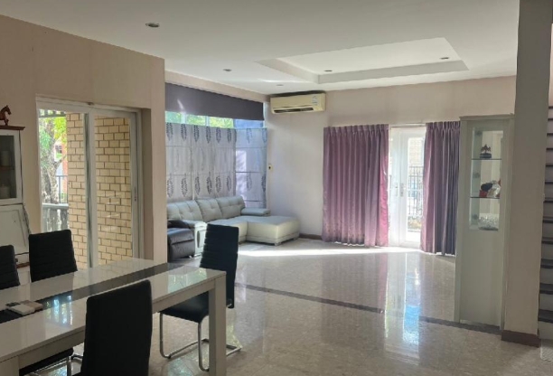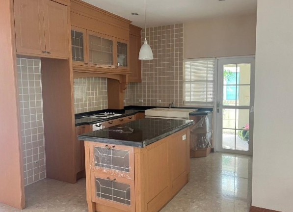 4 ห้องนอน 5 ห้องน้ำ (ห้องน้ำในตัวทุกห้อง), 1ห้องแม่บ้าน เฟอร์นิเจอร์บางส่วน แอร์ทั้งหลัง ครัวไทย / ครัวฝรั่ง แยกสัดส่วน จอดรถได้ 4 คัน