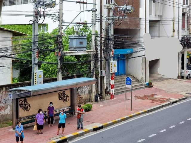 อาคารติดป้ายรถเมย์ด้านหน้า