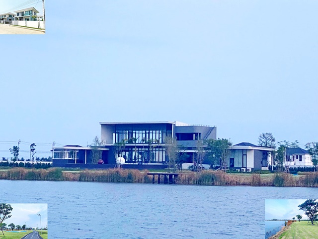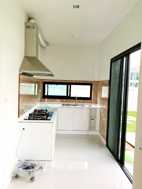 for rent Silver Park 2-storey detached house Lam Phak Chi Market 3bed 2bath 2parking 4A/C garden around the lake next to the road 102sq.wa. 180sq.m. 9,998B-M the wind blows the air is very good.